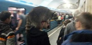 Живой енот вместо шапки. Киевлянин шокировал подземку
