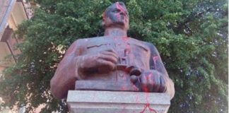 В Полтаве облили краской памятник Ватутину