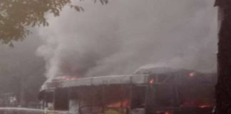 В Киеве во время движения загорелся автобус с пассажирами