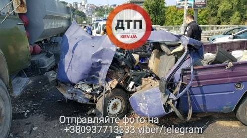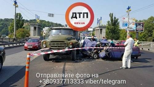 . В Киеве на мосту Патона автомобиль «Москвич» с арсеналом оружия на полной скорости врезался в грузовик.