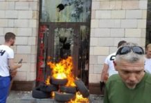 Как сообщают очевидцы, активисты забросали магазин подручными средствами и начали жечь у входа шины. Разбиты окна и двери магазина, все испачкано краской. В Киеве...