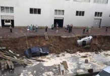 Последствия мощного ливня в Киеве: три авто провалились под асфальт