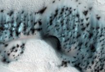 Диоксид углерода из атмосферы при температуре минус 125 градусов по Цельсию превращается в кристаллы сухого льда, что оседают на поверхность планеты