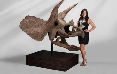 Один из лотов — череп трицератопса. Он был найден в Монтане в 2014 году на территории частного дома. Точный возраст ископаемого установить сложно, но по предварительным данным ему не меньше 65 млн лет. Череп рассказывает историю животного: проколы на голове он мог получить в схватке с другим трицератопсом или тираннозавром. Торги стартовали со 150 тысяч долларов, а планируется выручить от 200 до 300 тысяч американских долларов.