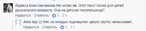 Користувачка Лариса Константинова зауважує, що дописи Кошкіної схожі на тексти для дітей дошкільного віку.