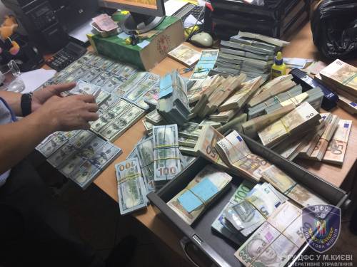 «Во время санкционированных судом 13 обысков в г. Киеве было изъято 21 печать задействованных в преступной схеме украинских предприятий, 89 печатей иностранных фирм, наличные средства (в долларах США, евро, российских рублях и гривне) на общую сумму около 34 млн грн», — сообщает ГПУ.