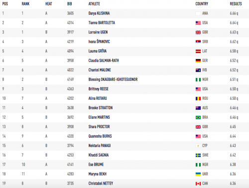 Примечательно, что никто из атлеток не сумел выполнить квалификационный норматив (6.70 м), а победу в квалификации отпраздновала Дарья Клишина, выступающая под нейтральным флагом. Ее результат — 6.66 метра.
