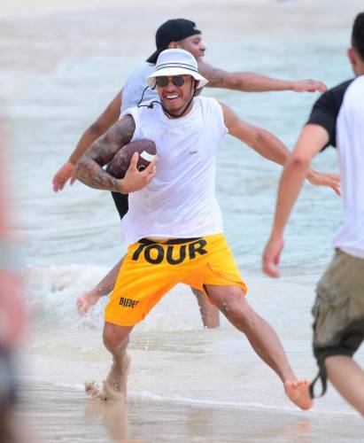 Там он был замечен на одном из пляжей в компании неизвестной очаровательной брюнетки, вместе с которой 3-кратный чемпион мира даже играл в американский футбол: