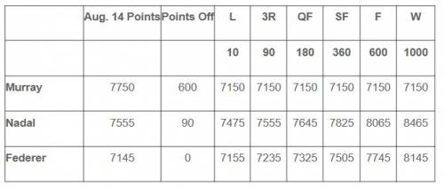 Так как Маррей в Цинциннати не выступит, у него сгорит 600 очков за прошлогодний финал. Надаль потеряет всего 90 пунктов, так как в 2016-м остановился в третьем круге. Федерер же вообще не приехал на Western & Southern Open 12 месяцев назад, так что будет лишь прибавлять очки в свою копилку.