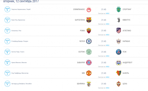 . Во вторник состоится первый игровой день группового раунда Лиги чемпионов УЕФА сезона 2017-2018.