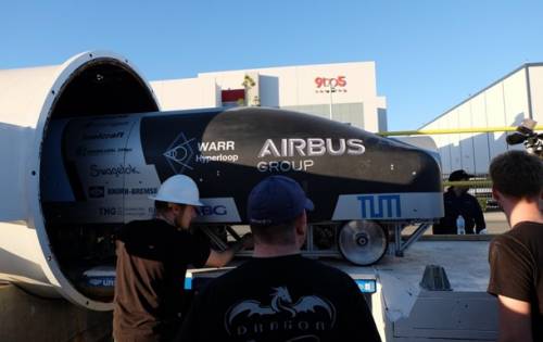 Команды соревновались в скорости при запуске прототипов транспортного сердства в 1,25-километровой трубе, постороенной около завода SpaceX в Калифорнии.