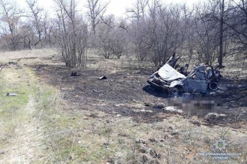 Было установлено, что автомобиль наехал, вероятно, на противотанковую мину, произошел взрыв. На месте происшествия полицейские обнаружили четыре обугленные трупы.